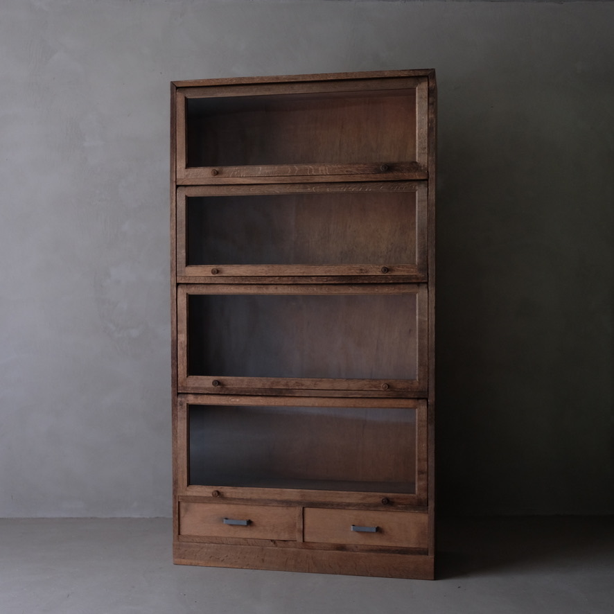 重厚な楢材のガラス戸棚になります。