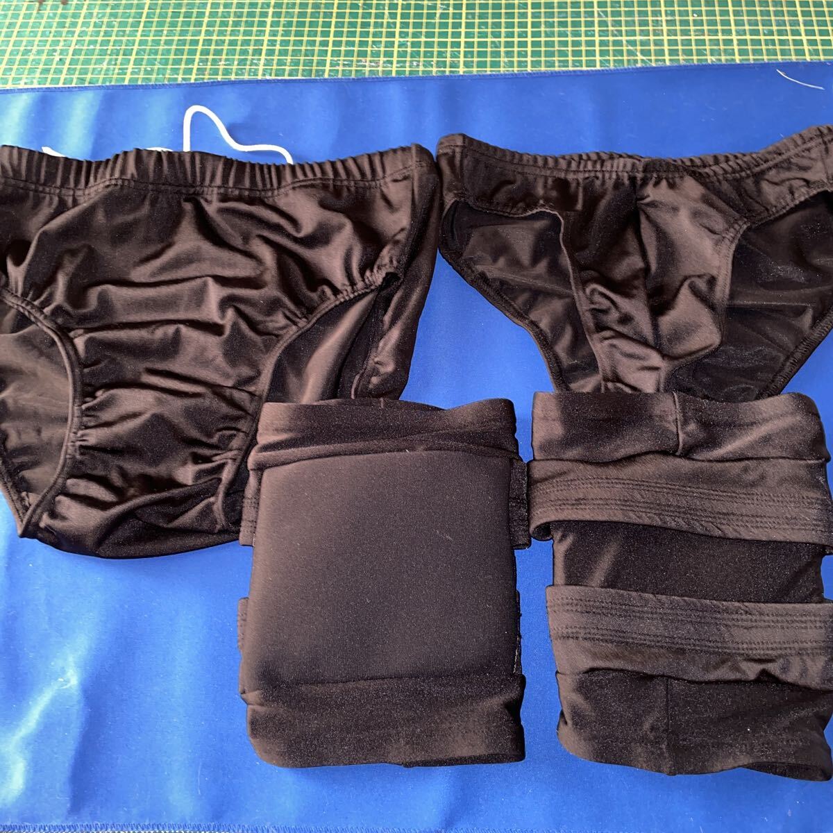 - Lサイズ黒色プロレス3点セット ショートタイツ アンダーパンツ ニーパット Lサイズ3点セット 水着