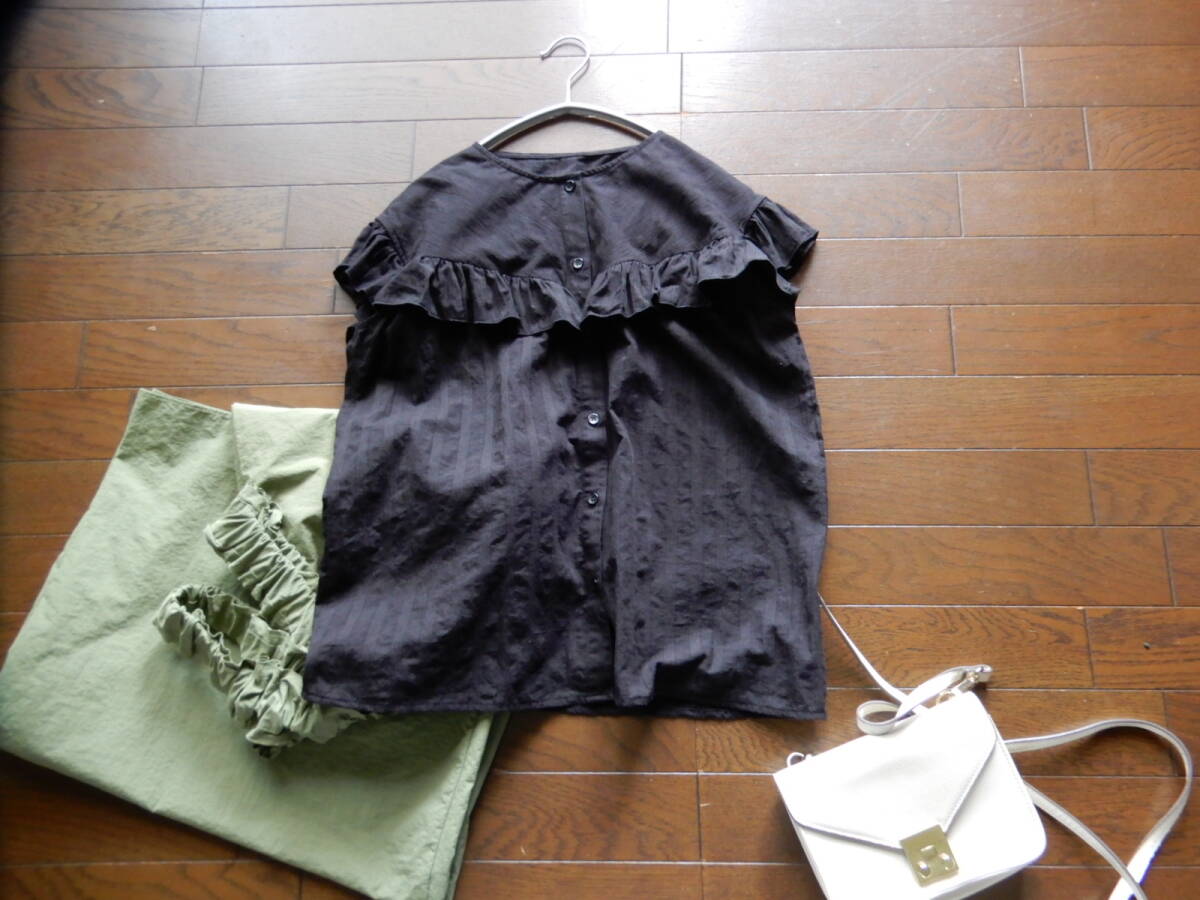 - 【 titivate Select/ティティベイト】 大人可愛いブラックフリルゆとりコットンブラウス 黒 S 前ボタン 羽織り
