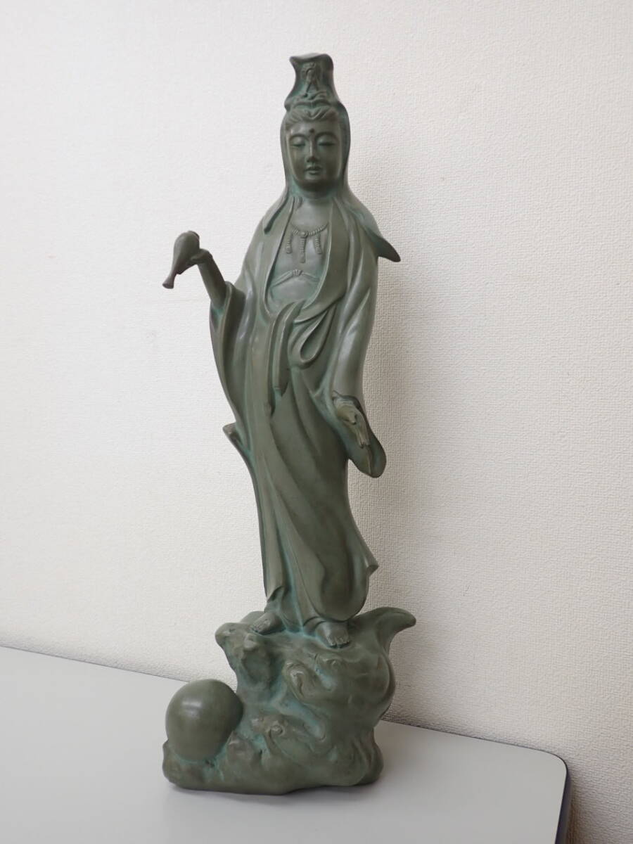 - 306-; 小林正孝 慈母観音菩薩 水瓶観音 仏像 ブロンズ 銅製 重さ;約9.2kg 高さ;約63.5×幅;23.5×奥行;15cm ★