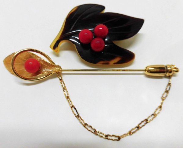- YN12★べっ甲★ブローチ2個★日本工芸★ペンダント★中古品★ピンブローチ★ゴールド★