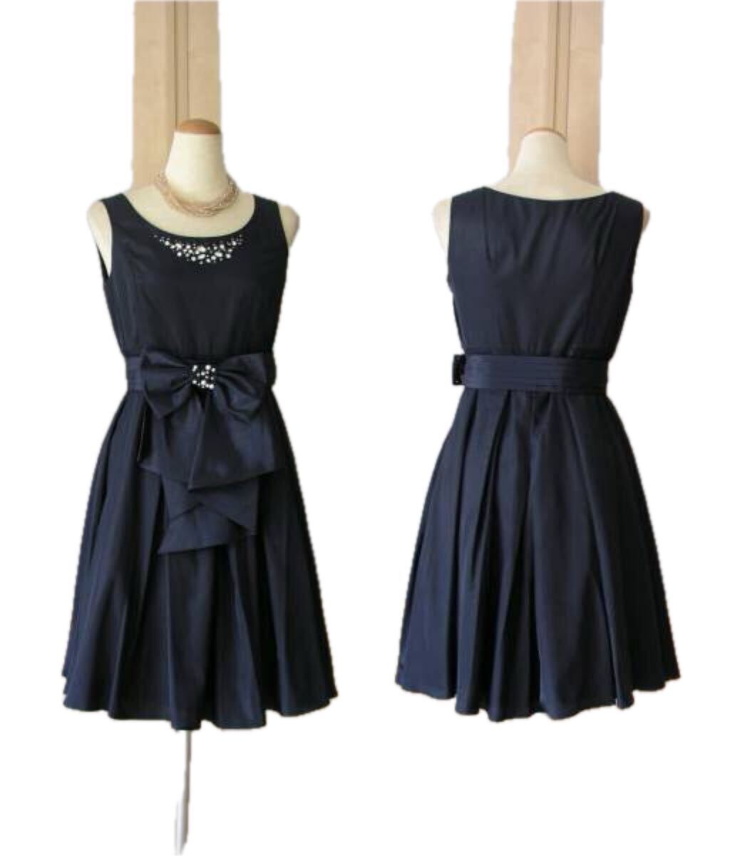 - 結婚式・お呼ばれ・発表会/size38*9号◆ビジュー付*ふんわり*リボンドレス*ワンピース*濃紺
