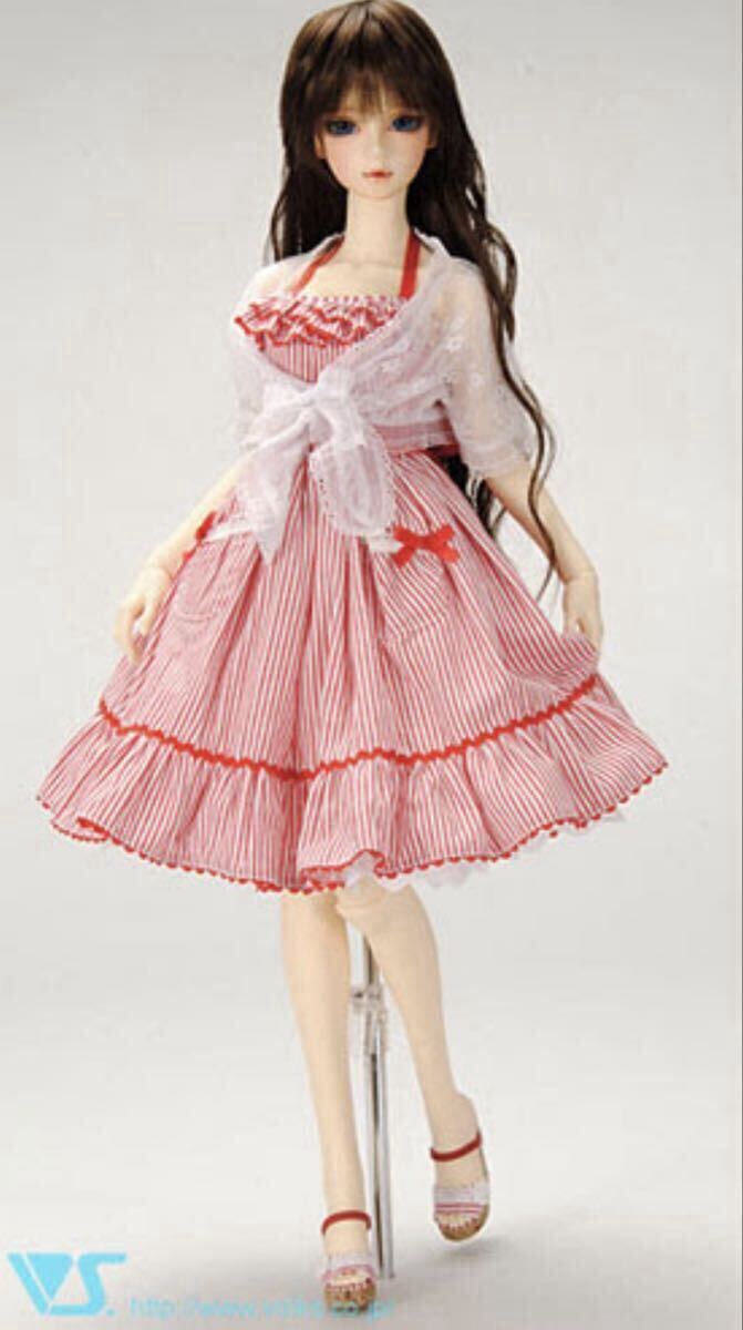 - ボークス ホワイトローズコレクション さくらんぼ色ストライプワンピースセット サンダルセットで