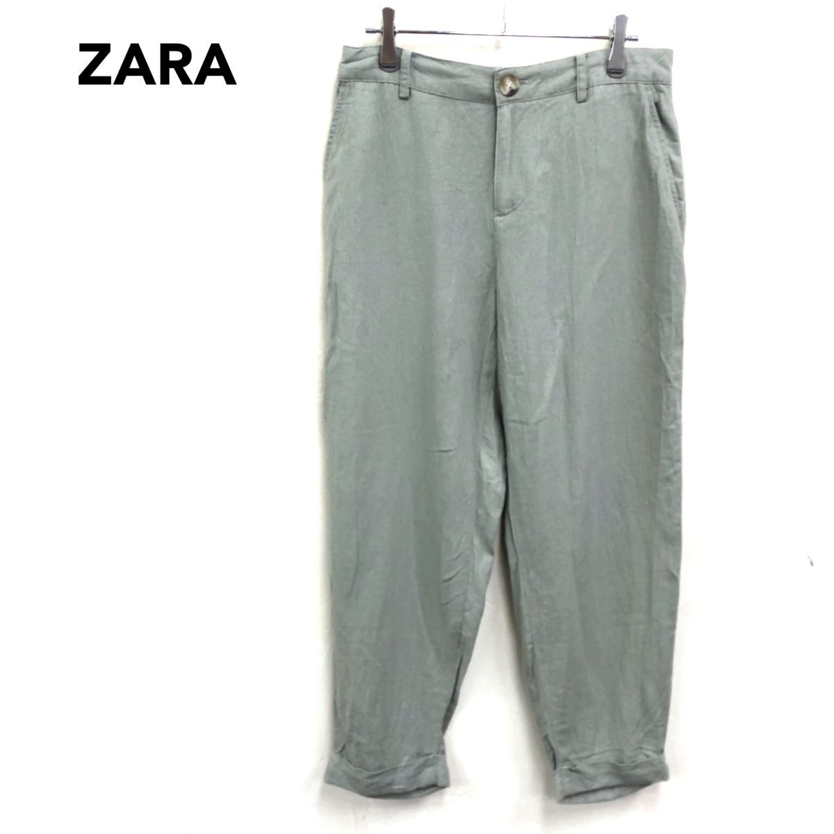 > 2H2001-W-N◆ZARA ザラ リネンパンツ ダブル 裏地なし シンプル 無地 ナチュラル系 レディース 春夏◆size:USA 2 カーキ系 リネン 麻