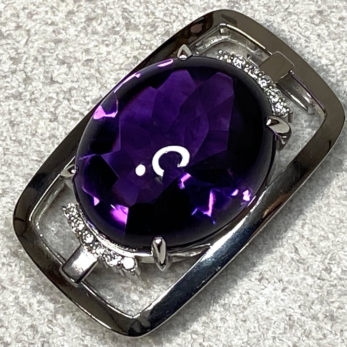 > ☆Pt900(プラチナ)アメジスト56.01ct/ダイヤモンド0.33ct 和装小物/高級帯留 重量約31.7g 鑑別書付き 管理No400