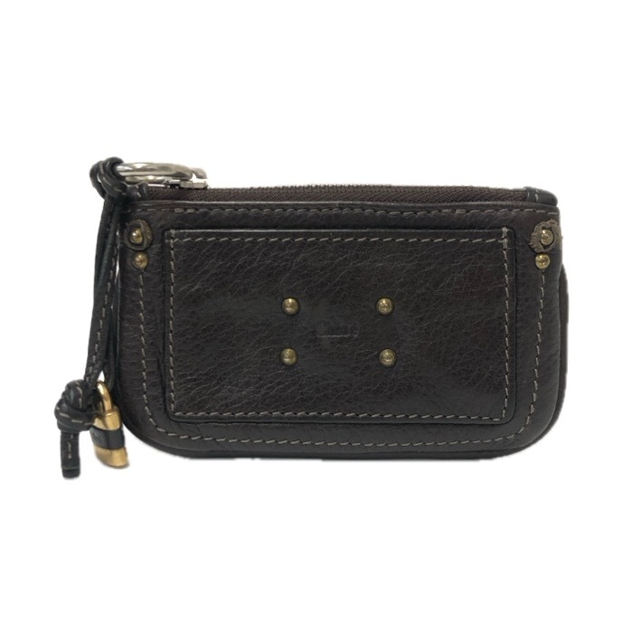 > Chloe クロエ スタッズ コインケース レザー ダークブラウン【中古】 レディース