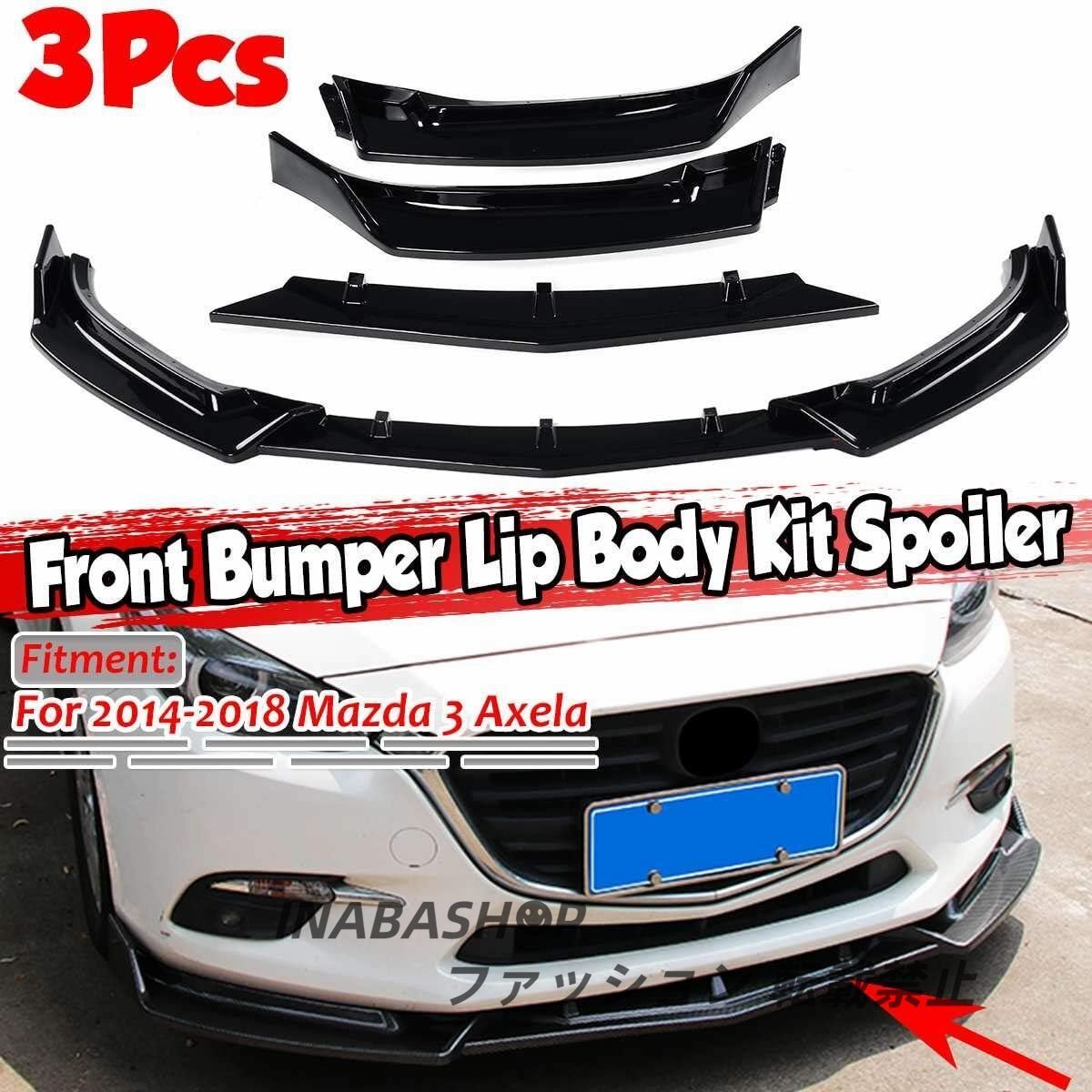 - フロントバンパースポイラー マツダ3 2014-2018ブラック3Xカーリップボディキットスプリッターリップディフューザーカバーセキュリティ