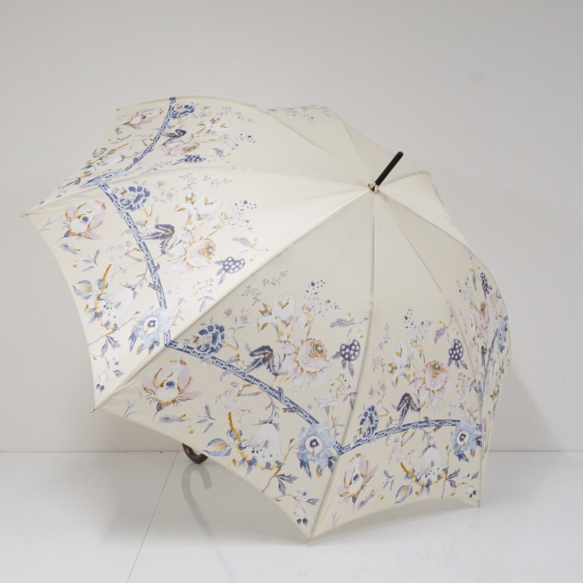 > 耐風傘 GHERARDINI ゲラルディーニ USED品 イエロー フラワー 日本製 木製手元 グラス骨 軽量 ジャンプ 60cm S3138