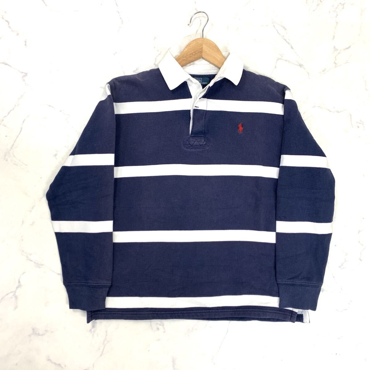 - Polo by Ralph Lauren ポロバイラルフローレン 長袖ポロシャツ トップス 綿 コットン ボーダー ワンポイント刺繍 ネイビー M(10-12) YA2