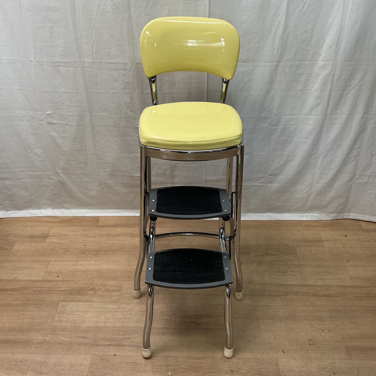 - 【LBB484】ホウトク ヴィンテージ ステップスツール ハイチェア 椅子 イス 踏み台 脚立 飾り台 黄色 アメリカアンティーク
