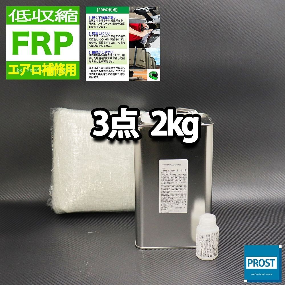- 低収縮タイプ FRPエアロ補修3点キット 樹脂2kg 一般積層用 インパラフィン 硬化剤 ガラスマット付 セット Z25