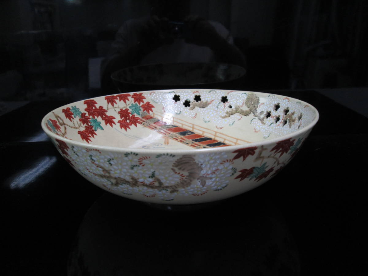 - 京焼■斎藤雲楽■渡月橋雲錦文様透大鉢■茶道具