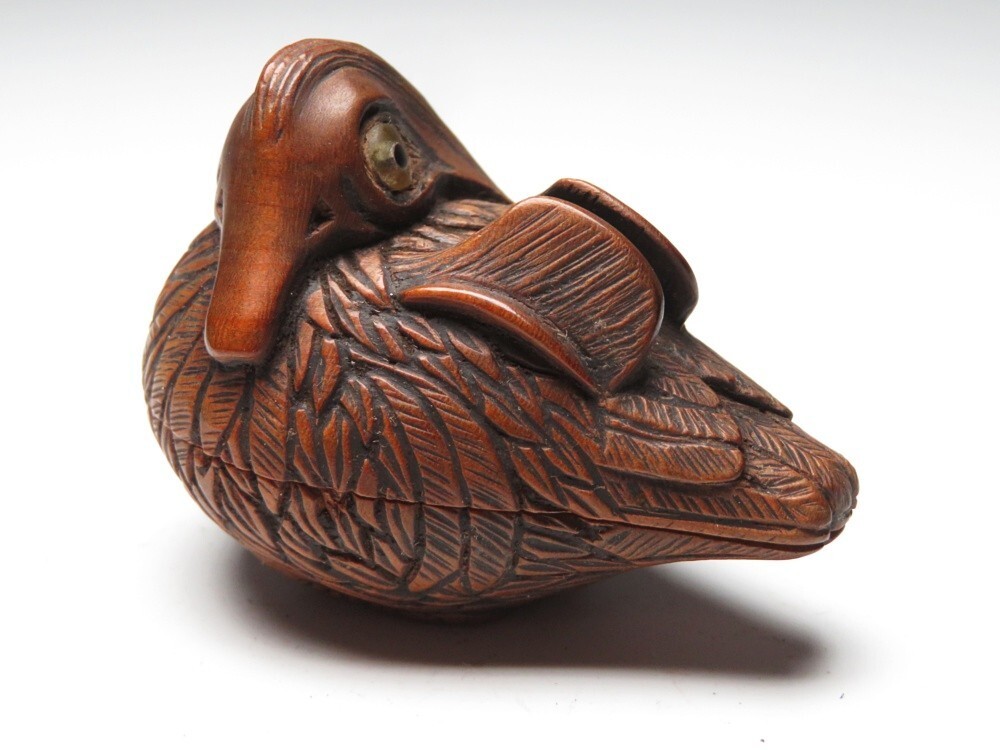 - 【11398】明治期 堤物 木製 おしどり 鳥 根付(初品・買取品)