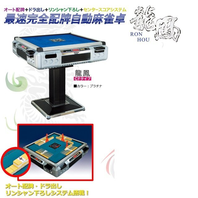 > 全自動麻雀卓 龍鳳 オーバーホール 美品 WAKWAK 自動配牌機能 ドラ出し 王牌残し 7山残し 嶺上牌下ろし 25000点×4 点棒付 牌付 引取