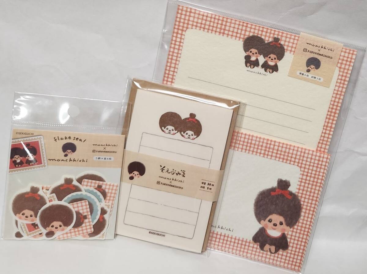 - 送料込み! 紙モノ : セット *古川紙工 / モンチッチ*『 フ レ ー ク シ ー ル & そ え ぶ み 箋 & レ タ ー セ ッ ト 〜 ふ た ご 〜 』