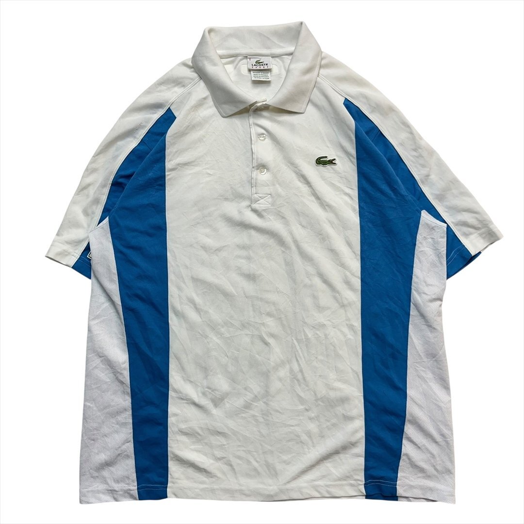 > Vintage LACOSTE ラコステ SPORT スポーツ ワンポイント ワッペン刺繍 ロゴ 半袖 ポロシャツ メンズ FREE ホワイト 古着 ヴィンテージ