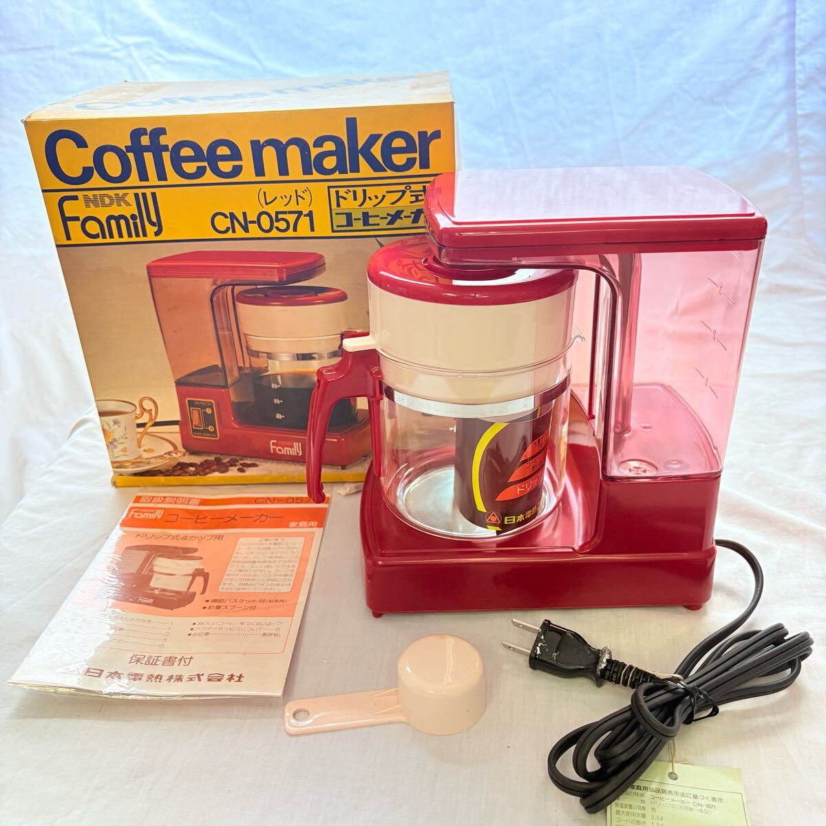 > コーヒーメーカー 昭和レトロ 箱付き 未使用品 赤 ドリップ式 4杯分 family? CN-0571 レトロモダン ポップ レトロ家電 ジャンク 送料無料