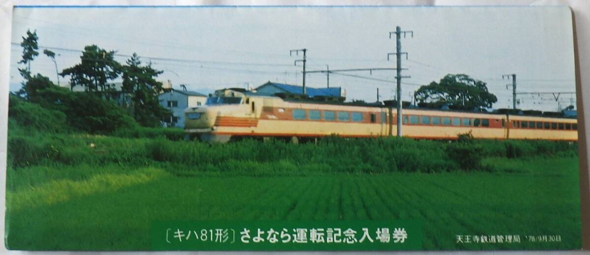 - 〔キハ81形〕さよなら運転記念入場券 ’78/9月30日 天王寺鉄道管理局