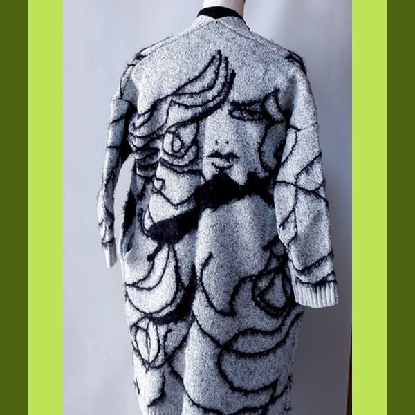 - 未使用 Fサイズ ロングカーディガン ジャガードニット コート コーディガン 杢グレー