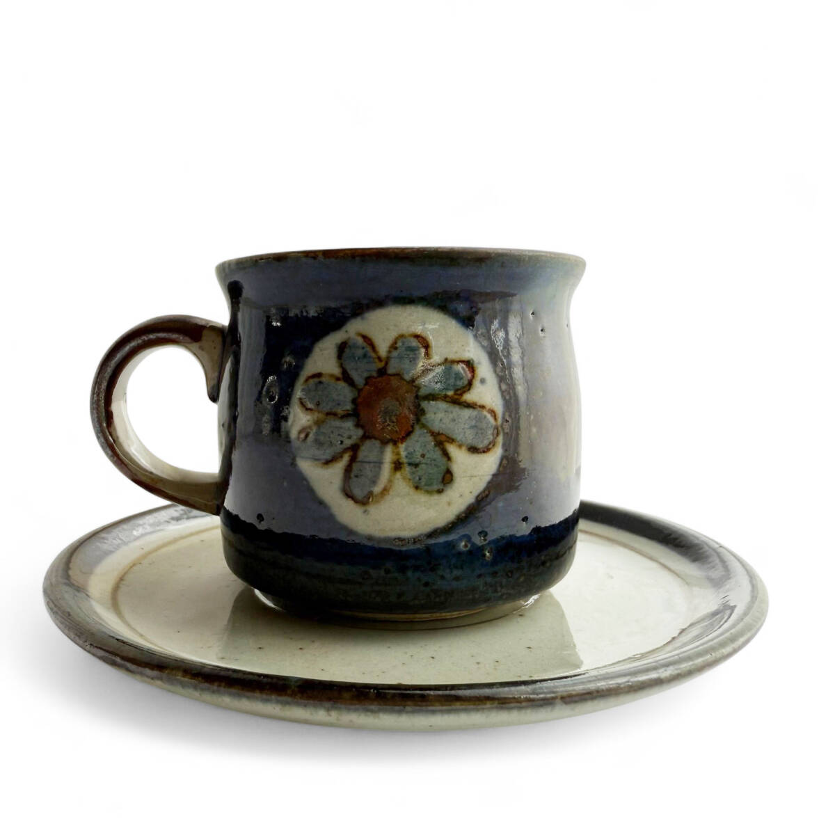 - N7-1129 陶芸 カップ&ソーサー 花柄 コーヒーカップ
