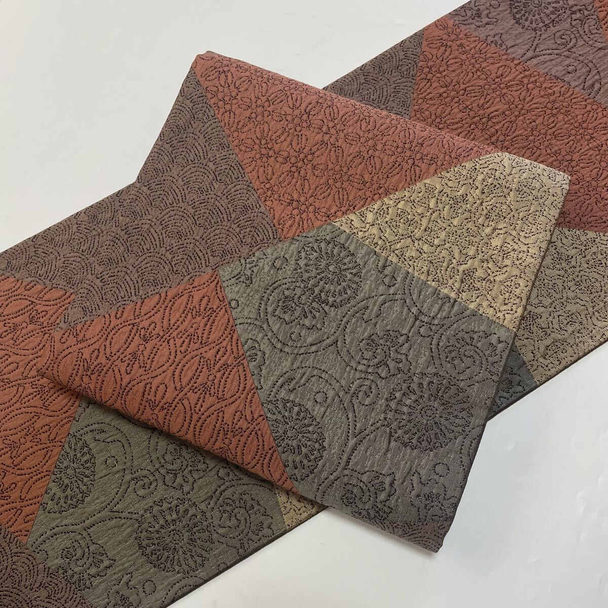 - #H828 美品 袋帯 六通 未仕立て 本場筑前博多織 ふくれ織 刺し子風 金銀糸 花唐草 正絹 上代価格128,000円 和装 和服【wellriver】