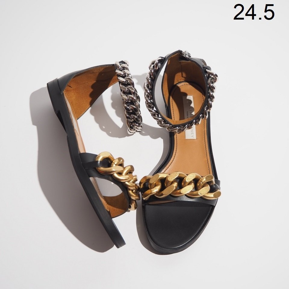 - R1019P ▼STELLA McCARTNEY ステラマッカートニー▼ チェーン付き アンクルストラップ フラット サンダル ブラック 39/24.5cm 春夏 rb mks