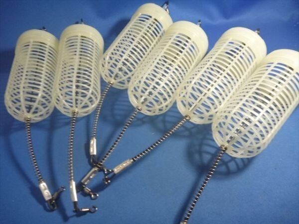 - 白オキアミ籠6個・蓄光・天秤、カゴ釣、エサ出し調節可能 蓄光タイプの籠 6cm×16cm 遠投オキアミ コマセカゴ