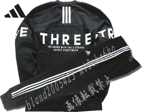 > ■新品【adidas】アディダス 背面BIGロゴ ルーズフィット 速乾生地 クルーネックシャツ&3ラインパンツ上下■BK/L