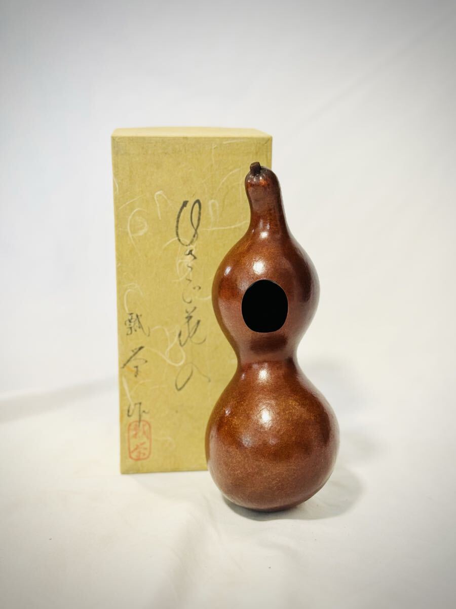 - 未使用 ひさご 花入 瓢栄 作 瓢箪 ひょうたん 花器 華道具 古美術 壁掛け 高さ24cm 花瓶 瓢箪型