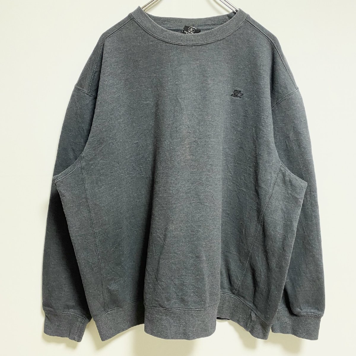 - 古着 used STARTER スターター 長袖ワンポイントロゴ刺繍スウェット トレーナー クルーネック グレー XLサイズ