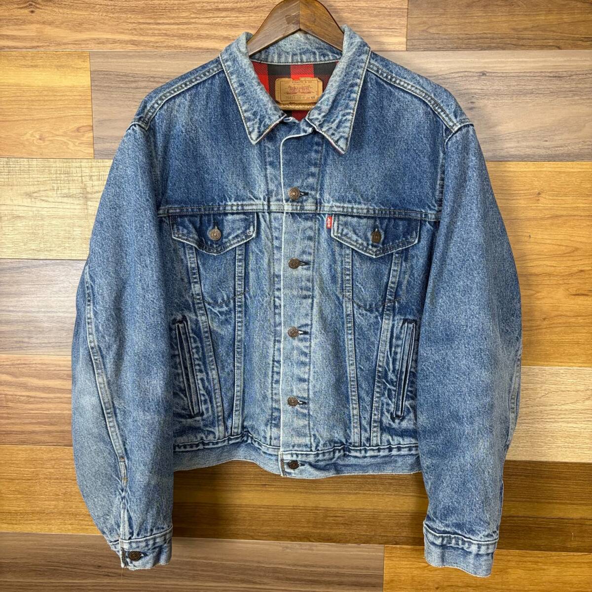 > USA製 80s LEVI'S リーバイス 70411-0816 裏地 コットンネル デニムジャケット ジージャン サイズ 46 メンズ XL位 ボタン裏 527 r25071790