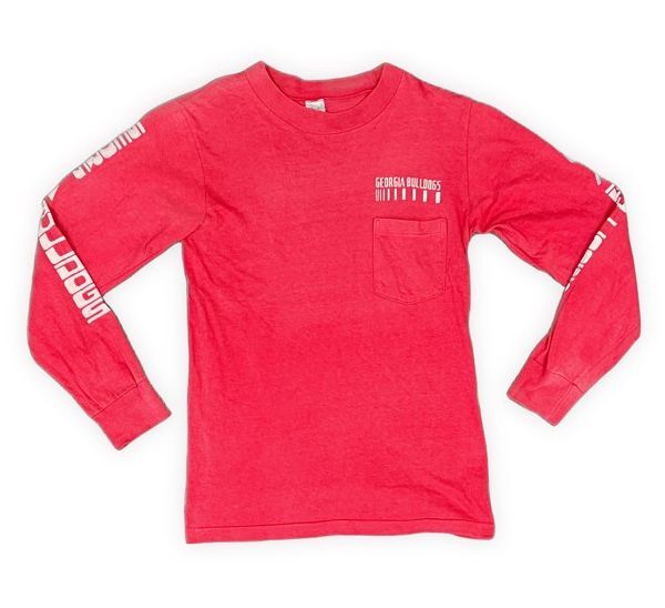 - 80’s 米国製 トリコタグ チャンピオン Champion ビンテージ Tシャツ 長袖 GEORGIA BULLDOGS ポケット 袖プリント レッド M [ta-1494]