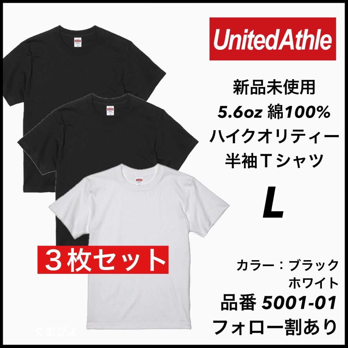 - 新品未使用 ユナイテッドアスレ 5.6oz 無地半袖Tシャツ 3枚セット L サイズ 黒 白 ブラック ホワイト United Athle