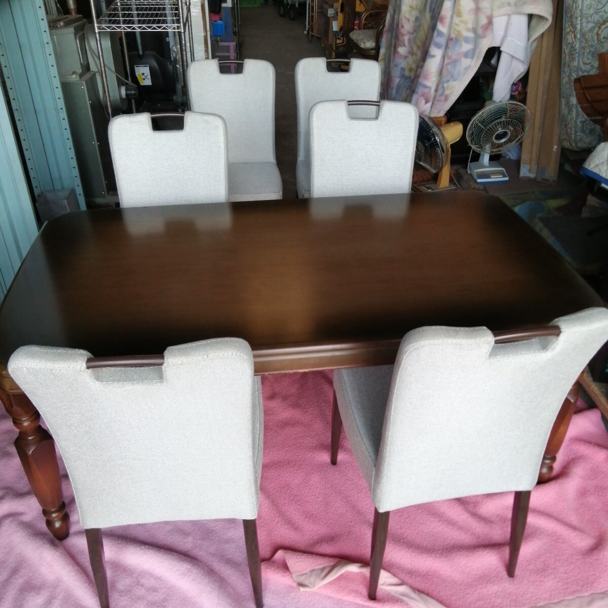> 佐賀発 ダイニングテーブル 椅子6脚セット 天然木 (約1650×910×685mm)(約450×600×930mm)食卓フルセット