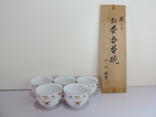 ●s38 【平安 橘吉】 お茶呑茶碗 湯呑 5客セット 花いろ