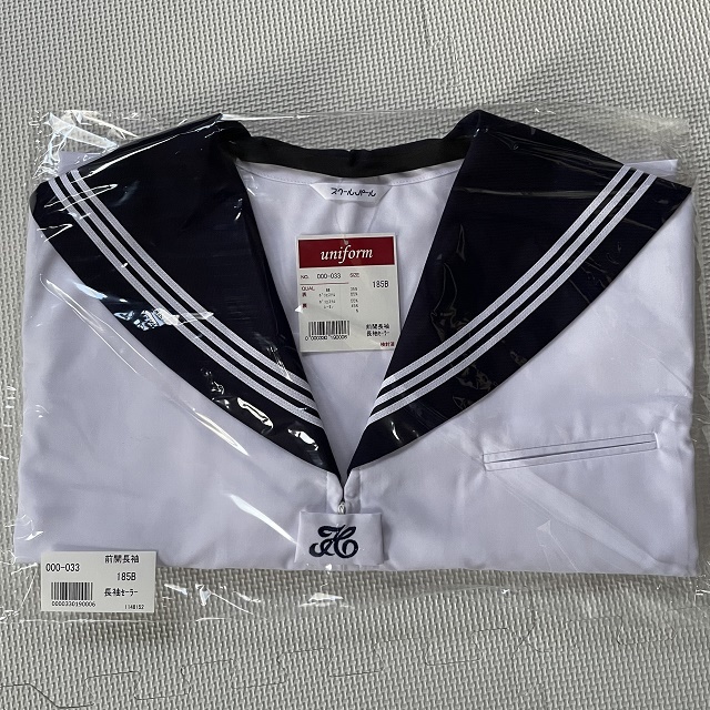- 【送料無料】スクールパール 長袖前開き セーラー服 白3本線 185B 新品 中間服