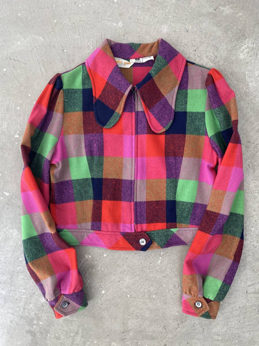 > 超希少!超美品!USA購入!クレイジーカラー!60s 70s wool jacket ウールジャケット ブルゾン ライダース チェック柄 マドラス