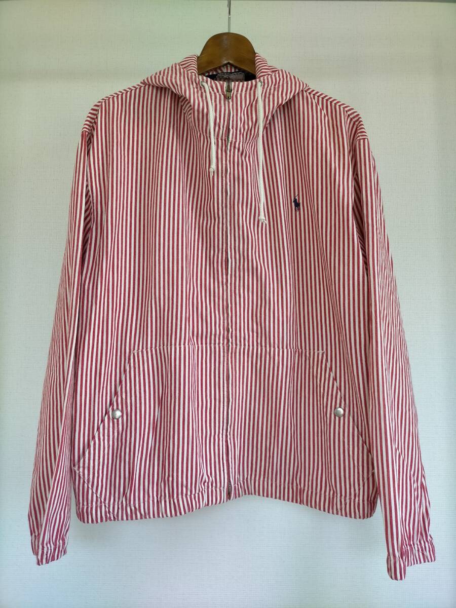 > 希少 状態良好 90s ビンテージ Polo Ralph Lauren ポロラルフローレン フード付き スイングトップ size-L ストライプ ★USA古着