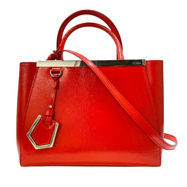 > フェンディ 8BH253-M5Q 2way プチトゥージュール トゥージュール ハンドバッグ トートバッグ レザー エナメル レッド FENDI チャーム付き
