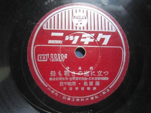 - コロムビア流行歌SP盤696★波平暁男、松原操/母も戦の庭に立つ★近江俊郎、真木絢代/伏敵の誓い★古関裕而・作曲ニッチクSPレコード