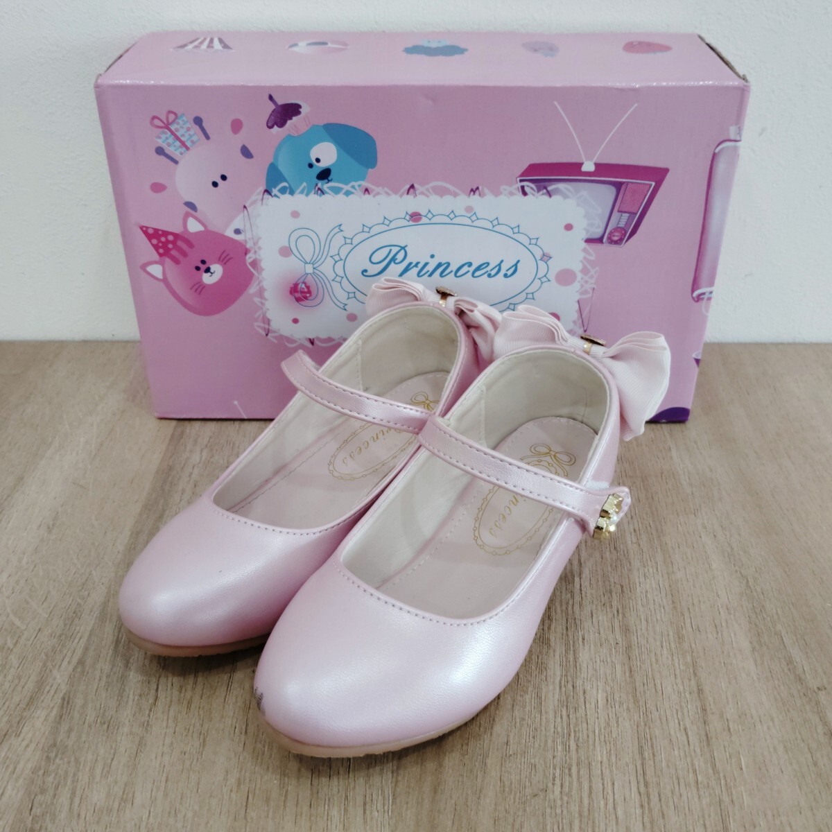 - Princess パンプス キッズ 17.5〜18cm ヒール フォーマルシューズ リボン ピンク 靴