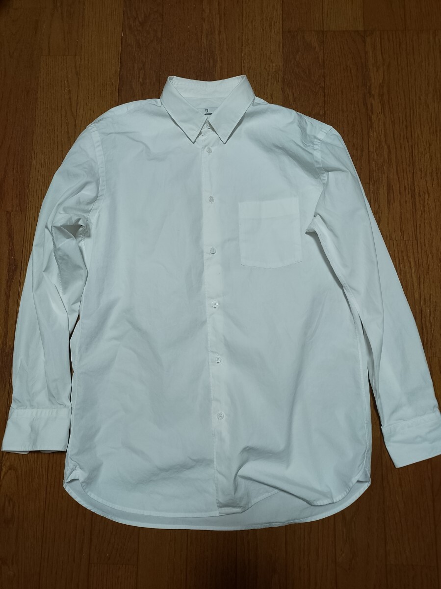 > UNIQLO +J ユニクロ ジルサンダー スーピマ コットン 長袖シャツ メンズ サイズS ロゴ入りマチ付き 白