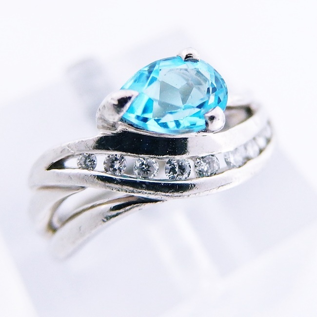 - Pt850 ★リング 指輪 ●ブルートパーズ0.9ct◇ダイヤモンド0.15 ●10号 【中古】 /m8734