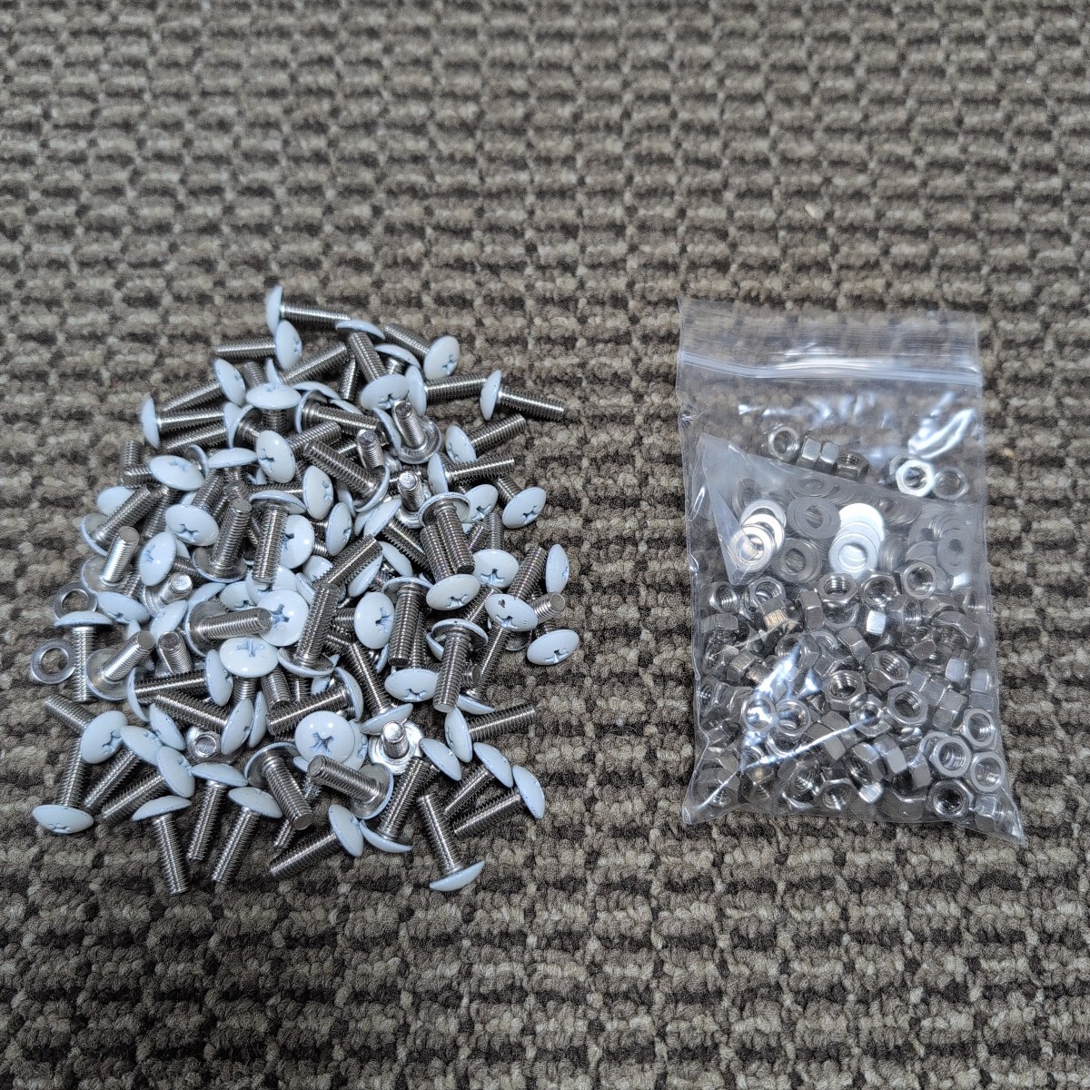 - ジャンク品/長期保管品/メーカー不明/ステンレス/小ネジISO/トラスM5×16mm/ホワイト/頭径約11.5mm/ナットワッシャ付き/1P120本入り