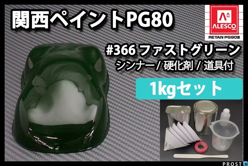 - 関西ペイント PG80 #366 ダーク グリーン 1kg セット (シンナー 硬化剤 道具付) 2液 ウレタン 塗料 ファストグリーン Z25
