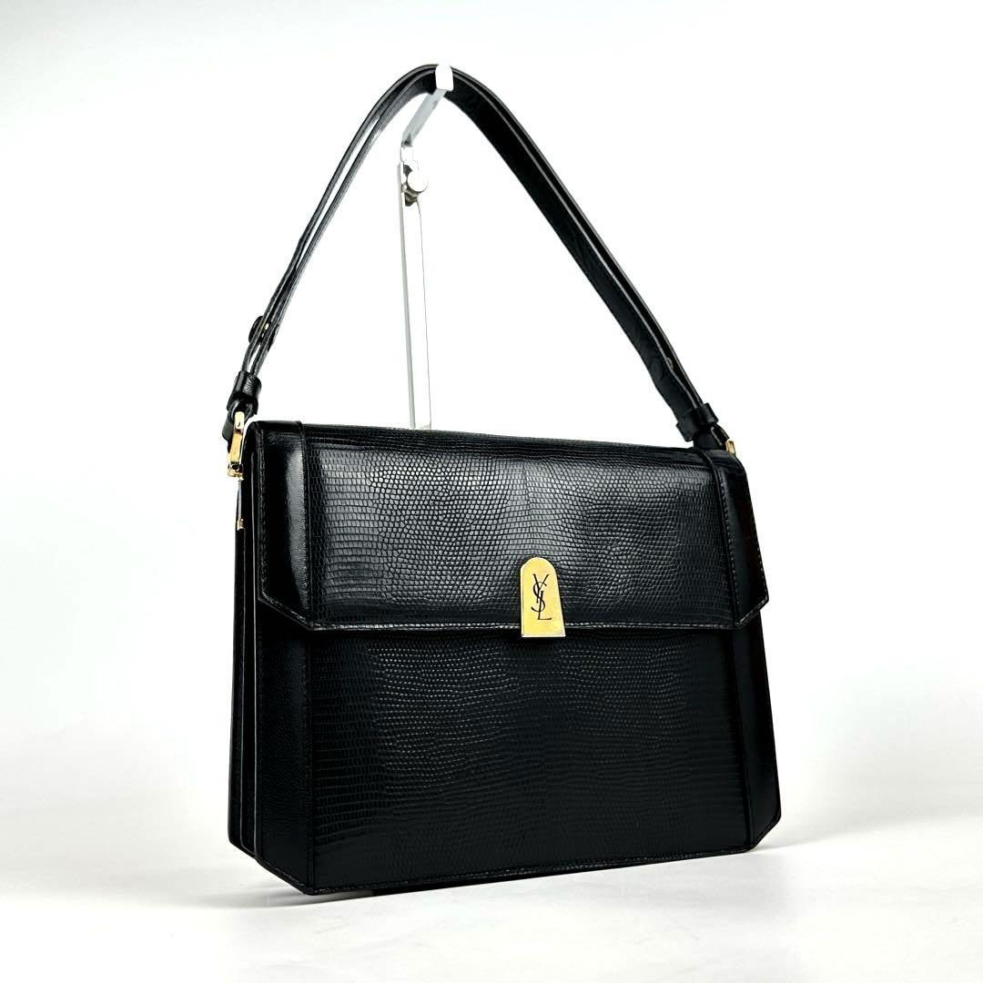 - 美品●Yves Saint Laurent イヴサンローラン ショルダーバッグ 2way YSL カサンドラ 斜め掛け リザード レザー 黒色 ブラック フォーマル