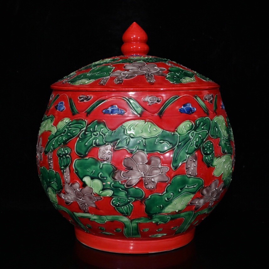 - ▽鴻▽ 明 弘治年製款 古陶瓷品 琺瑯彩 荷花紋 蓋罐 陶藝 古賞物 古董品 時代物 稀少珍品 中国古玩 中国古美術
