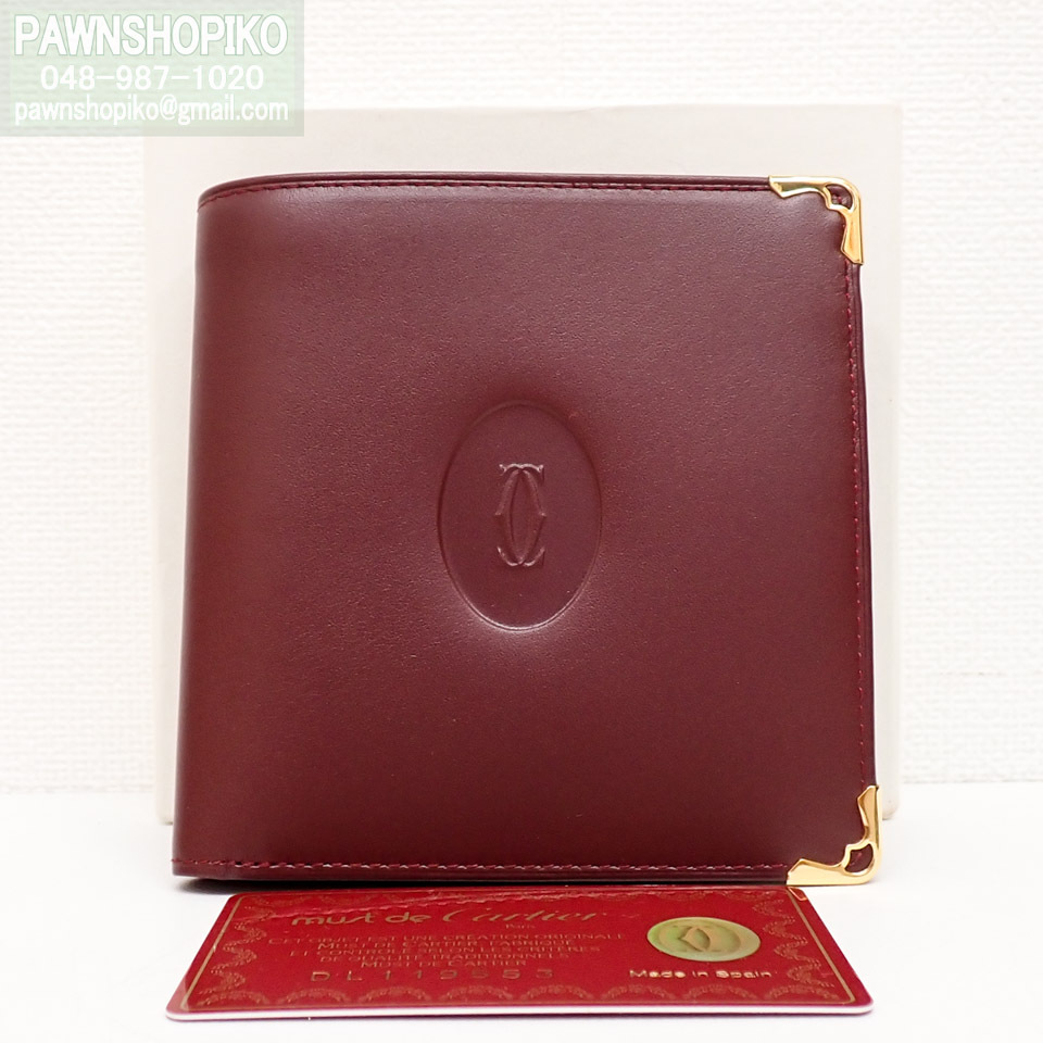 - カルティエ Cartier マストライン 二つ折り財布 小銭入れ付き レザー ボルドー 新品同様 [質イコー]