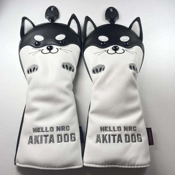 - ♪秋田犬♪ フェアウェイウッド用ゴルフヘッドカバー2個セット ブラック