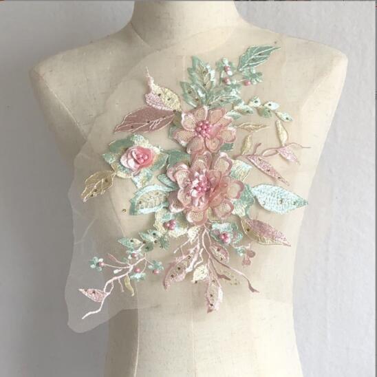 - 上質お花 レース花柄レース生地5枚セットお花のチュールレース真珠刺繍入り花レースドレス生地レースDIY手芸用品アクセサリー テーブル掛け